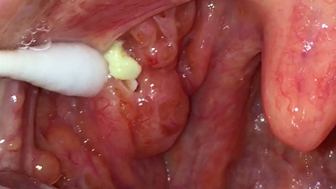 Tonsil stones, also known as tonsilloliths, are build ups of bacterial and cell debris that form in the back of your throat. They are mostly harmless, though they do cause bad breath, so be grateful the below video doesn’t come with Smell-o-vision, I guess.